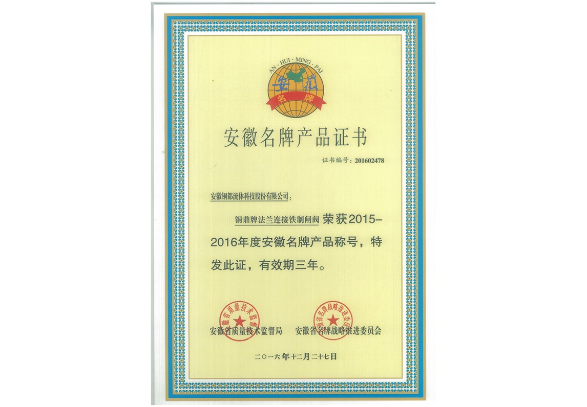 閘閥-名牌產(chǎn)品證書