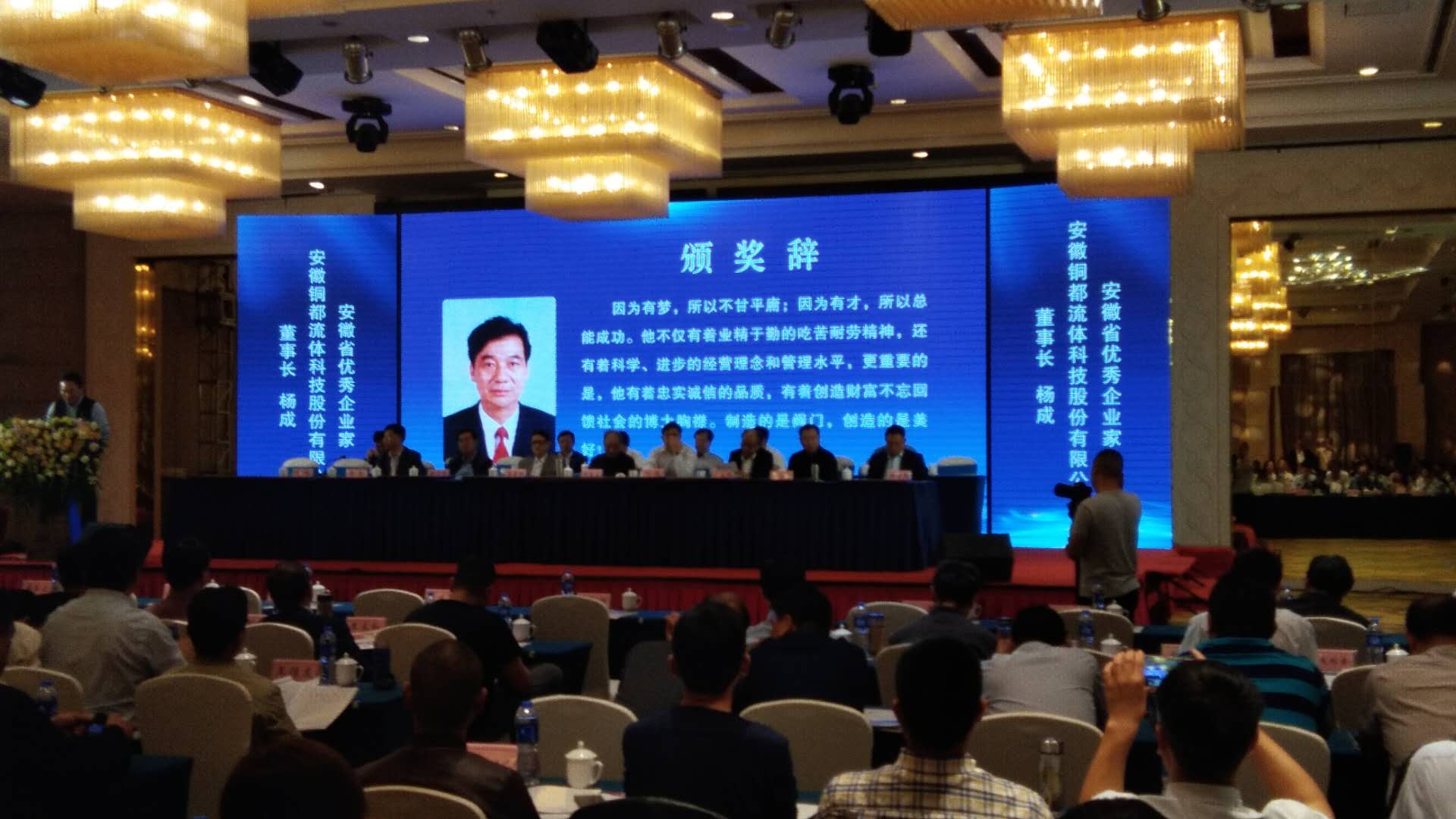 公司董事長楊成作為銅陵市代表,榮獲"安徽省優(yōu)秀企業(yè)家"榮譽(yù)稱號,并出席了安徽省優(yōu)秀企業(yè)家表彰會暨安徽省企業(yè)誠信建設(shè)大會頒獎儀式。