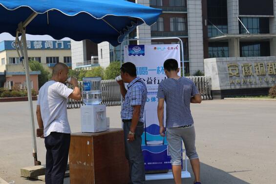 他們用汗水,方便了市民的生活、他們用汗水,洗去了城市的塵埃,因?yàn)橐獔?jiān)守崗位,甚至有時(shí)無法在口渴時(shí)喝一杯涼水,也無法在酷暑難耐時(shí)稍作休息。炎炎夏日,一杯清水對坐在辦公室的市民來說,是微不足道的,但是對高溫酷暑下的為戶外高溫作業(yè)人員來說,喝一杯清水在繁忙的一天中卻顯得如此奢侈。7月25日,共青團(tuán)銅陵市委、銅陵日報(bào)社聯(lián)合發(fā)起"請喝一杯水"愛心公益活動(dòng)后,我公司立即響應(yīng)號召,在我公司大門口設(shè)立愛心崗?fù)?愛心休息站",為在烈日下工作的人們提供夏季的一絲涼意。
