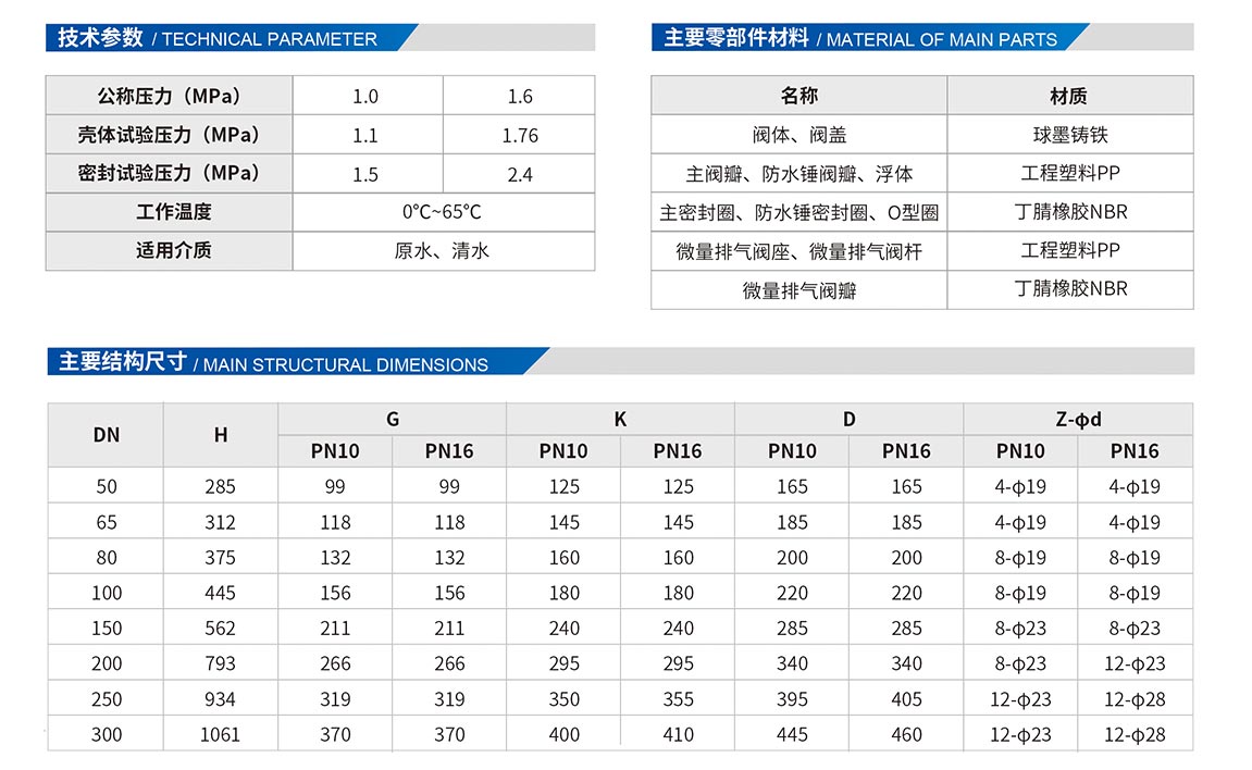 2、工程塑料閥瓣與浮球比重好性能可靠,即使冬季閥內結冰,當冰化開后可繼續(xù)使用,不會出現(xiàn)浮球被冰凍失效的問題。