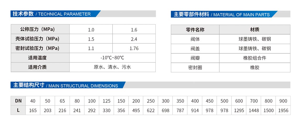 采用全流面積式設(shè)計(jì),水頭損失小,不易堆積雜物,密封采用斜板式設(shè)計(jì),關(guān)閉行程短,閥瓣采用橡膠與鋼板經(jīng)高溫壓制而成,耐沖涮,密封性能好,產(chǎn)品結(jié)構(gòu)簡(jiǎn)單、維護(hù)和保養(yǎng)方便。